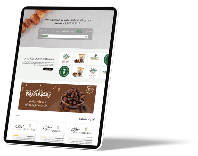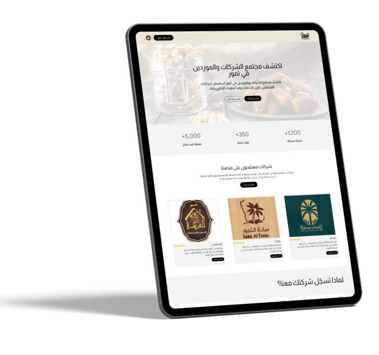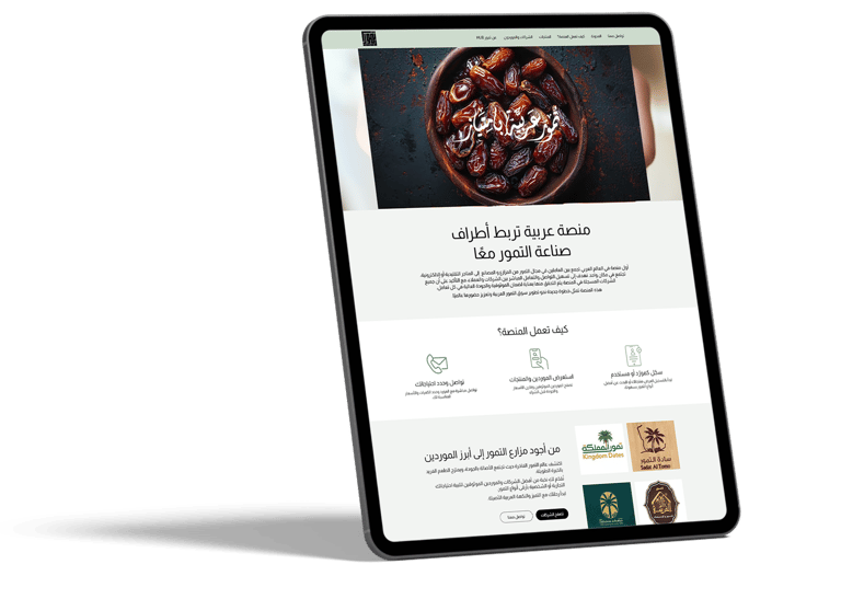 عملنا على تصميم وتطوير منصة تمور HUB لتكون وجهة رقمية متكاملة تجمع مزارعي ومورّدي ومصنّعي التمور في مكان واحد.
